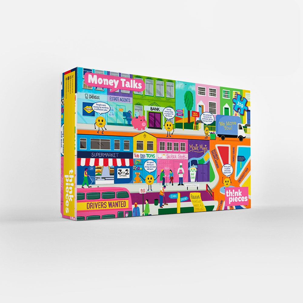 Teach children important money skills with the 250 piece Money Talks jigsaw puzzle. This educational jigsaw puzzle helps kids understand financial concepts through interactive play. Families and educators can use this unique jigsaw puzzle to introduce money management in a fun and clear way. The game encourages learning through teamwork and problem-solving. If you are looking for educational puzzles for children, Money Talks is the perfect choice for lasting value. An activity book is available with this puzzle, giving children challenges and activities related to this topic to extend learning at home. Suitable for ages 7+